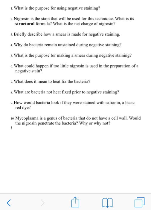 Solved 1 What Is The Purpose For Using Negative Staining Chegg Com
