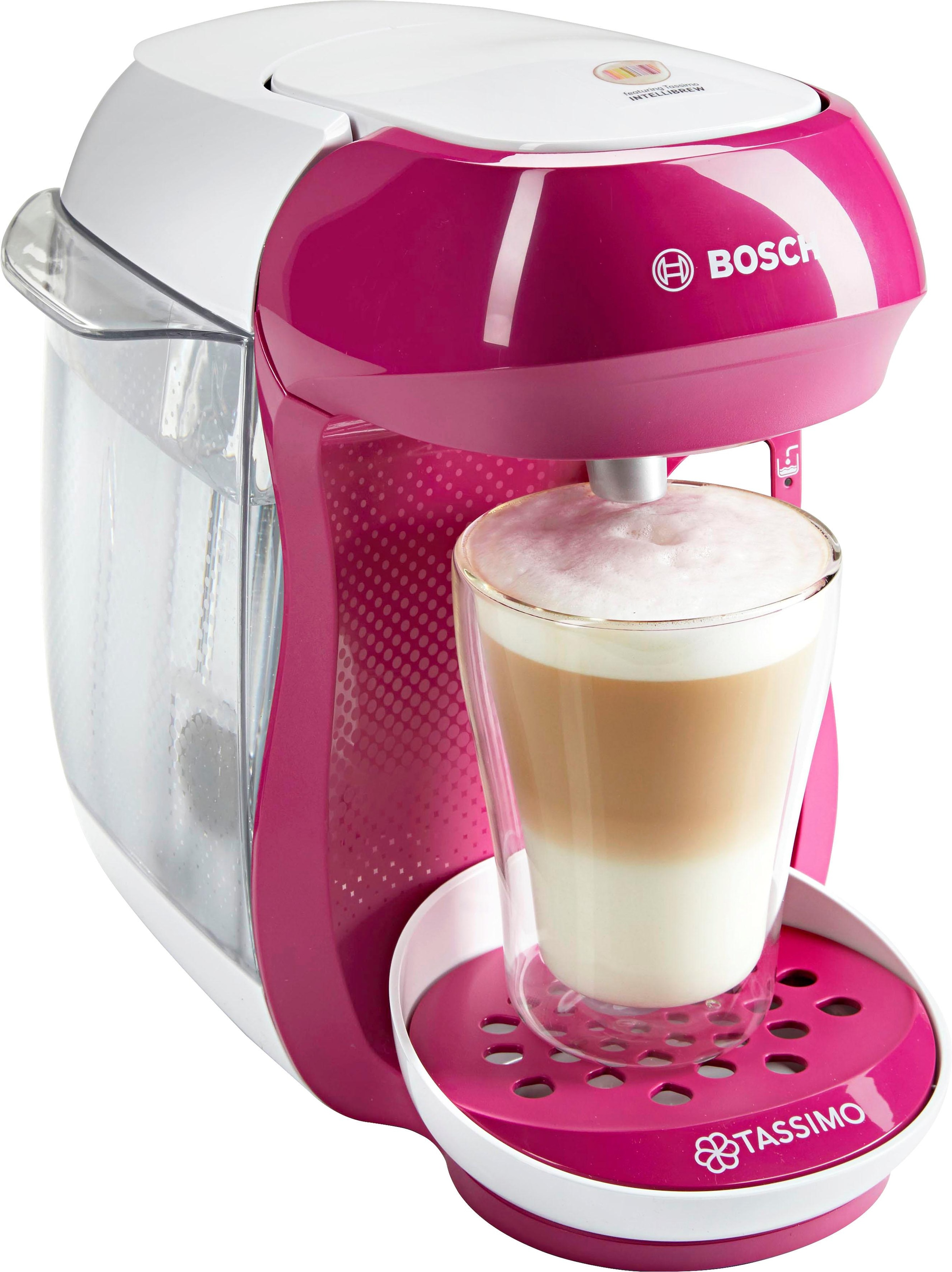 Tassimo kapselmaschine tassimo happy tas1001. Suny surprises everyone with its Smart Start System while the Happy has an easy one touch operation. Contrary TASSIMO Suny has a more simple design fitting every kitchen style. Bosch TAS1001 Tassimo Happy Kapselmaschine über 70 Getränke vollautomatisch geeignet für alle Tassen kompakte Größe 1400 W lila Besuchen Sie den Bosch Hausgeräte-Store 46 von 5 Sternen 13172 Sternebewertungen.